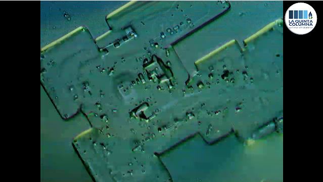 まだ何でもない。今度はもっと蒸発したサンプルを見てみましょう。そして、成分が見やすくなりました。直方体の構造を見てください。中央にあるのは何でしょう?CPU?なんということでしょう!