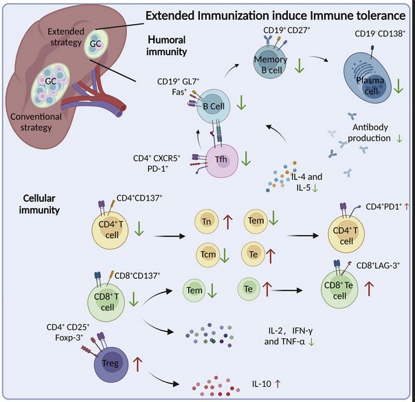 Feng-Xia Gao et al. Extended SARS-CoV-2 RBD booster vaccination induces humoral and cellular immune tolerance in mice, iScience,Volume 25, Issue 12, 22 December 2022, 105479