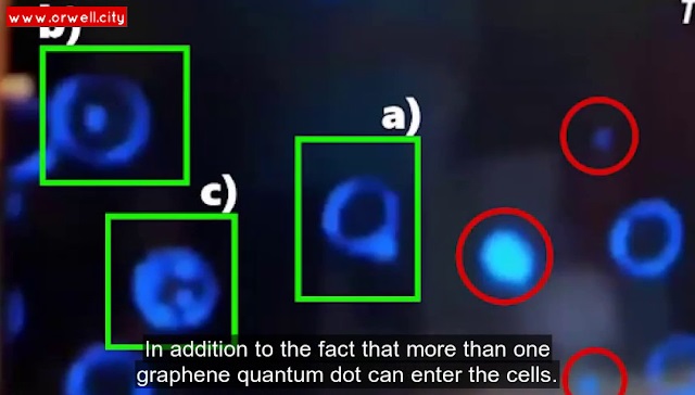 これに加えて、私たちはもう1つの基本的な証拠を付け加えねばなりません。それは、このグラフェン量子ドットがどのようにして血液細胞への浸透を行っているかを見ることができるのです。その証拠は、次の画像にあります。