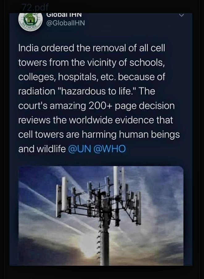 インドは、「生命に危険を及ぼす」放射線を理由に、学校、大学、病院などの周辺にあるすべての5G携帯電話タワーの撤去を命じました。裁判所の200ページを超える驚くべき判決では、携帯電話タワーが人間や野生生物に害を及ぼしているという世界的な証拠が検討されています。