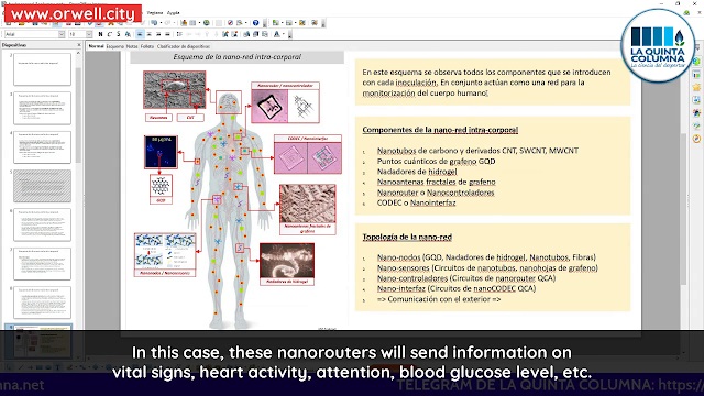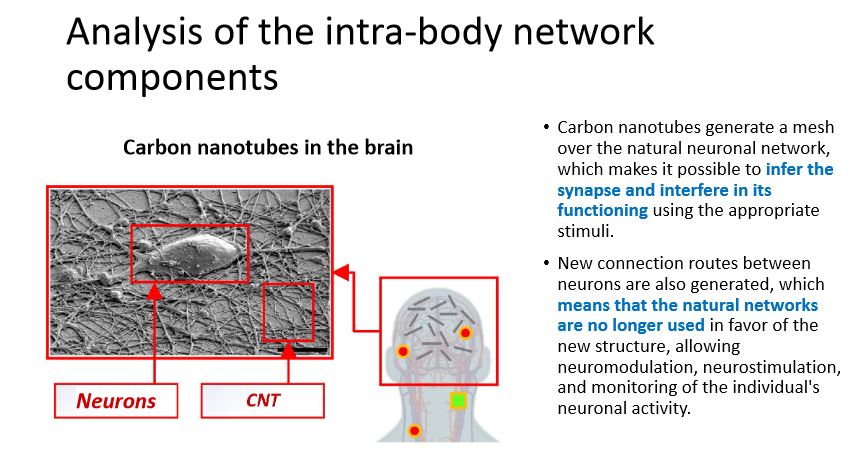 この図では、接種のたびに体内に導入されるすべてのコンポーネントを見ることができます。これらは、人体を監視するためのネットワークとして機能しています。そして一方では、私が言うように、私たちはモニタリングについて話しています。マッピングです。しかし、おそらく最も心配なことは・・・これは、あなたが家畜のようにブランド化されているので、すでに心配しています。しかし、一番心配なのは神経刺激です。つまり、ルーターは信号を送るだけでなく、それを受け取ることもできることを覚えておいてください。