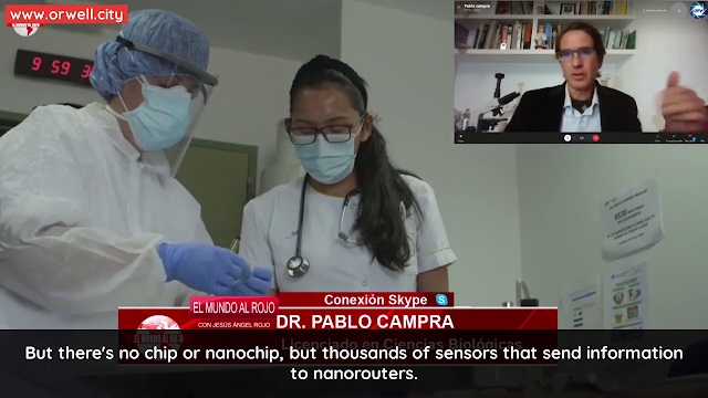パブロ・カンプラ博士:この質問は終末論的なものですね。しかし、獣の印が、売買を可能にするために人体に埋め込まれなければならないシステムを意味するなら、このシステムは完璧にそれを可能にします。文献にも書かれています。あたかも体内にクレジットカードが挿入されているかのようです。しかし、チップやナノチップがあるわけではなく、何千ものセンサーが情報をナノルーターに送ります。ナノルーターは、情報を外部に送り、出口のゲートウェイ、つまり携帯電話に送ります。そういう意味では、「獣の刻印」と呼ばれるコンセプトに似ていますね。