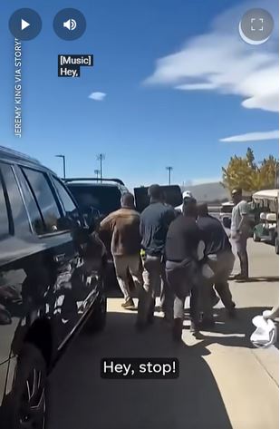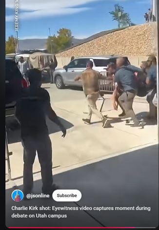 このグループの彼と一緒にいるのは、チャーリー・カークの生気のない体をSUVに運ぶ「セキュリティチーム」のより多くの(またはすべての)メンバーのように見える・・・それは近くの病院に行くために事前に配置されていた。