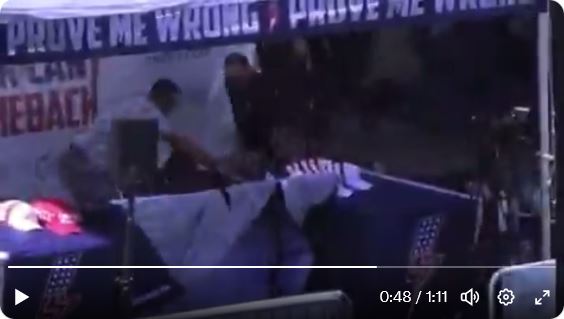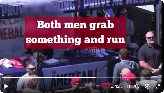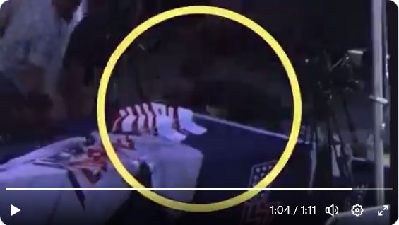 これはチャーリーの左側、私たちの右側から撮影された動画である。非常に疑わしい茶シャツの男が、ステージに向かって振り返り発砲する直前に、実際に背後を見上げている様子が映っている。彼は最終承認を待っていたのだろうか?