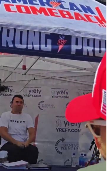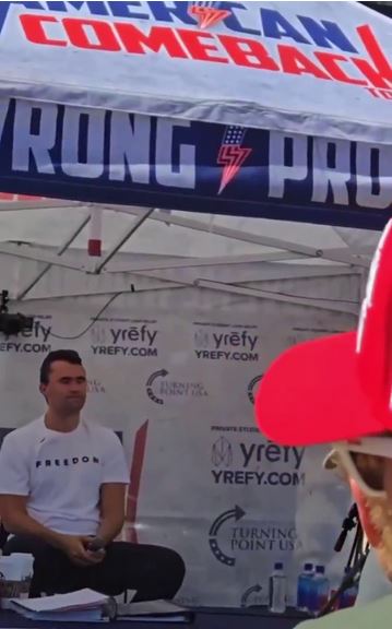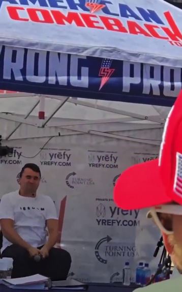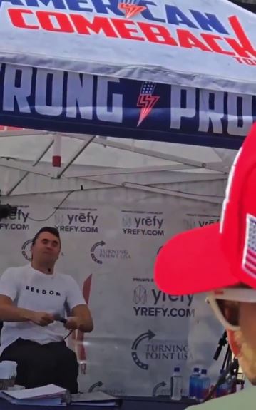 彼は彼らをジャスティン、ダン、ブライアン、リック[Justin, Dan, Brian and Rick]と特定した。 彼はその車両中での悲劇的な詳細について説明し、「ジャスティン」が運転していたとはっきりと言っている。 どの人物が「ジャスティン」か? 彼らは、チャーリーが話してから撃たれていることを示す以前のビデオや写真では、ほぼすべて「セキュリティ」と見なされている。 青シャツの男と、致命的な発砲が鳴った瞬間にチャーリーのすぐ後ろで複数の手信号を放っていた黒シャツの男もいる。