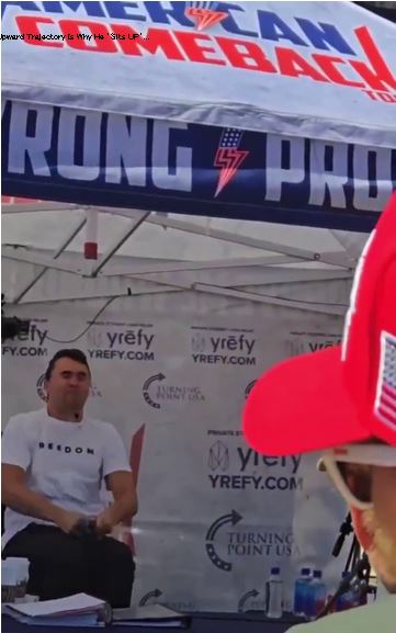 私たちは舞台右側からの眺望を持っている、そのビデオを見ると、明らかに入口の傷跡と思われる箇所が映っている。ほんの1、2フレームの一瞬の映像である。ブラウンシャツの男と、彼の位置からチャーリー・カークの首までの軌跡を考えてみよう。