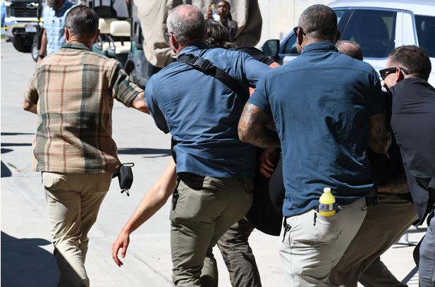 次の数秒間、グループはチャーリーを上のフレームに写っている場所から持ち上げ、都合よく待機していたSUVへと急いで連れて行くのが見える。これはBSMの非常に高解像度の写真で、彼の茶色のシャツと緑の無地のストライプがはっきりと確認できる。以前と同様に、彼はグループの主要な「警備」エージェントのようだ。彼はここで「葬列」をバンへと先導している。このドラマのこの部分を映した写真や動画が多数ある。