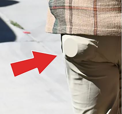この写真で最も重要なものの一つは、茶色のシャツの男の後ろポケットに入っているものである。