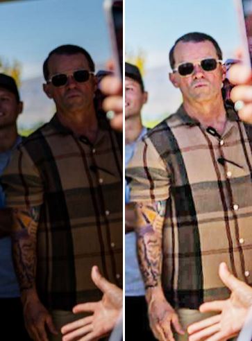 一方、左下にいるもう一人の黒シャツの男は、レイバンのMeta Wayfarerオーディオビデオレコーディングサングラスにそっくりなサングラスをかけていて、そのサングラスを調整しているようだ。そこに操作部があると言われている。