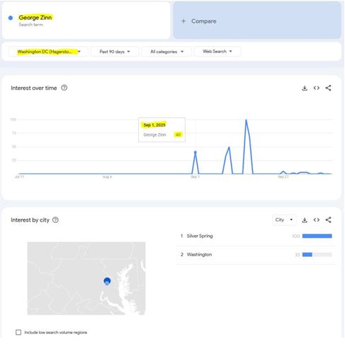 さて、ここからが本当に奇妙な話である。暗殺の数日前から、ジョージ・ジンの検索が始まった。無作為のユーザーからではなく、ワシントン D.C. からの検索であった。