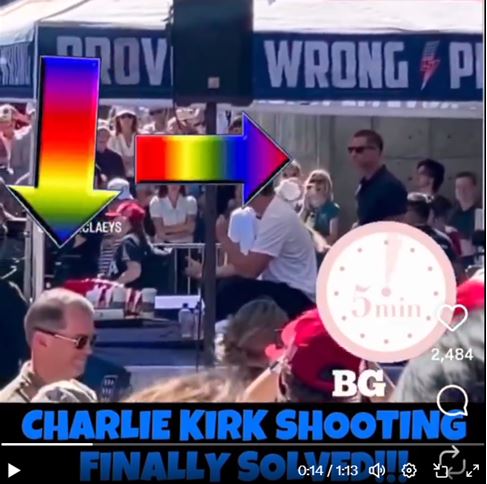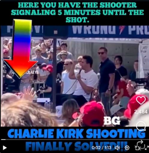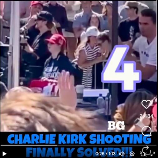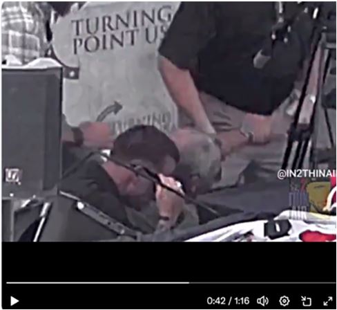 この最後の静止画では、チャーリー・カークの周りに5人の男が群がっているのが分かる。明らかに、何らかの計画的な行動が取られているようだ。