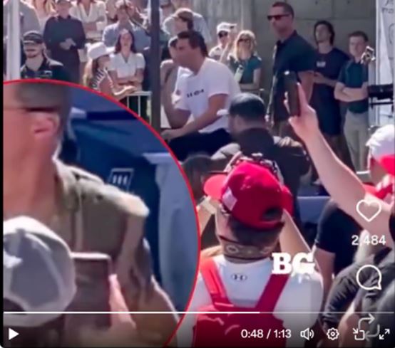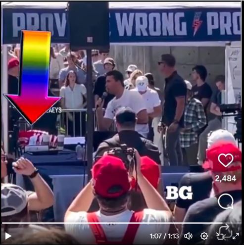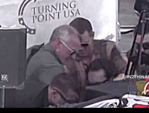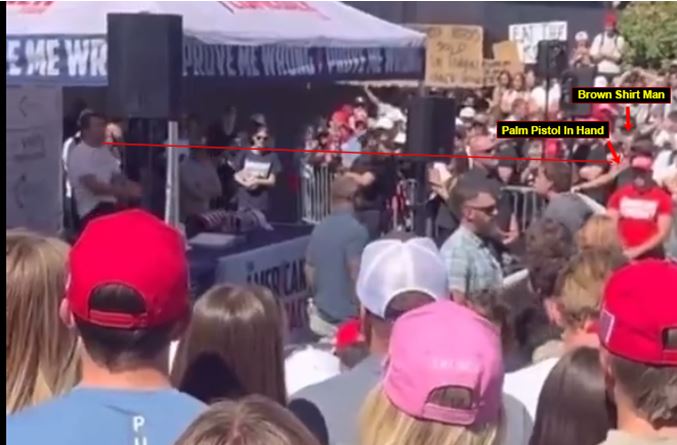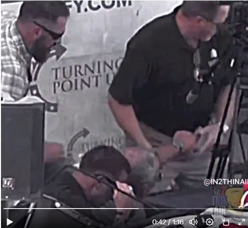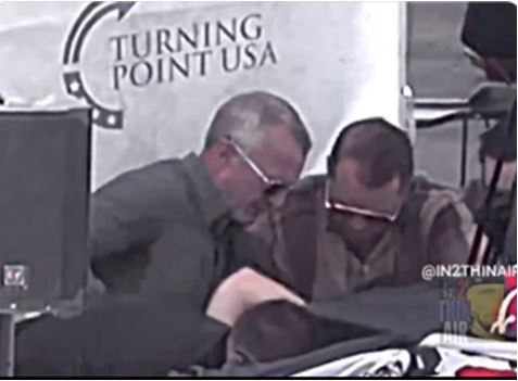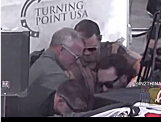 今、4人目のイスラエル人「警備」チームメンバーの頭部が見えている。彼はBSMの前下で何かをしていたのだが、ご覧のように起き上がるまで姿が見えなかった。チャーリーは殺される少し前にトークショーに出演した際、自分の警備チームは「全員イスラエル人」だと自慢していた。これらの男たちは全員、銃撃される直前までチャーリーの標準的な「警備」要員として活動していた。