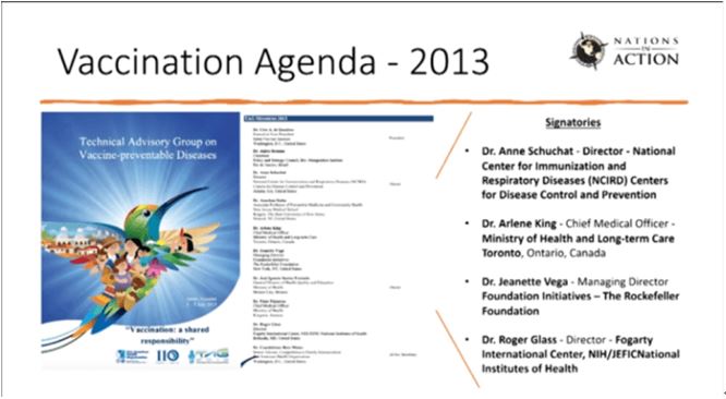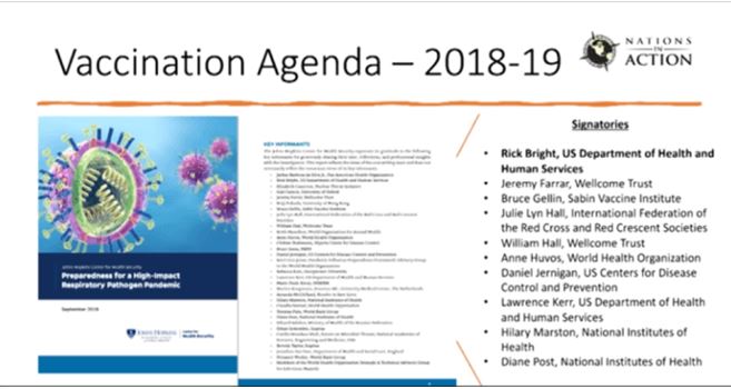 WHOは1948年に設立された国連の機関である。その後、タイムスタンプ13:45に行われたワーウィック・エコノミクス・サミットのスピーチで、彼は国連が「ひとつの世界政府」を目指すことを強調した。