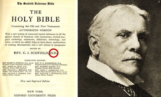 サイラス・スコフィールド[Cyrus Scofield](1843-1921)、彼のスコフィールド参照聖書はアメリカでこれらのアイデアを普及させました。