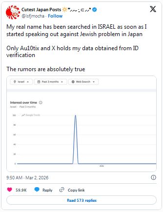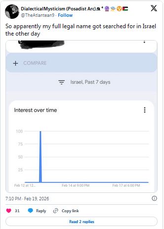 「イスラエルは、匿名ユーザーXとその家族が国に反対する発言をした直後に、彼らをGoogle検索していることが100%確認された」と、別の投稿者は書き、「Xは今や世界最大のハニーポット作戦だ」と結論付けている。