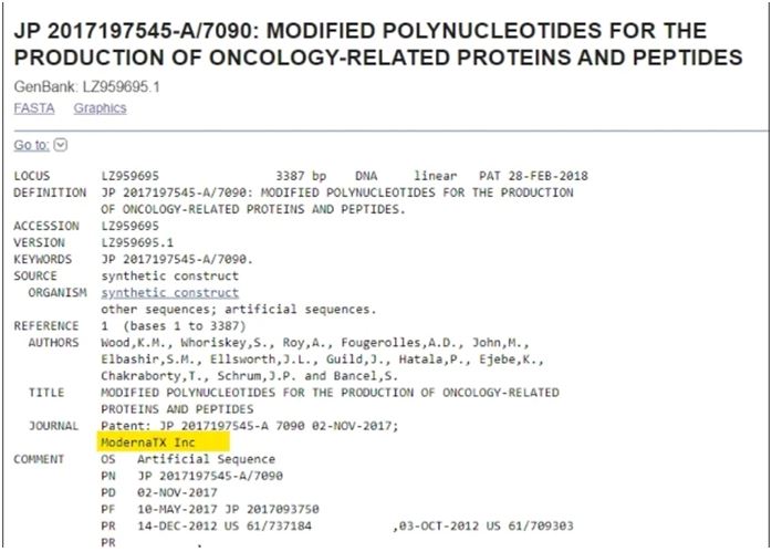 さらに、新しい研究によれば、ビッグファーマの一つで、米国にある3つの『ワクチン』のメーカーの一つであるモデルナが、COVID-19の原因となるSARS-CoV-2ゲノムの遺伝子配列の特許を取得していることが明らかになったのです。