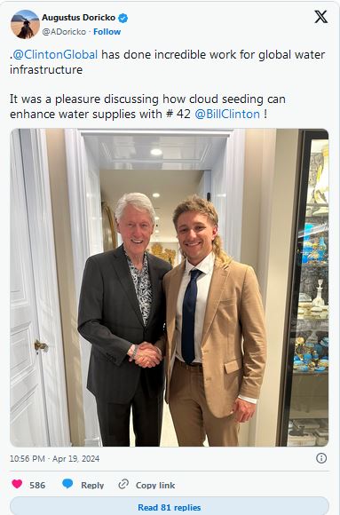 ピーター・ティールとビル・クリントンは、「不自然な」洪水の数日前にテキサスに噴霧したケムトレイルのスタートアップにリンクしていた Baxter Dmitry