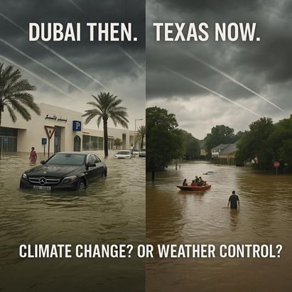 テキサス州カーヴィル[Kerrville]を襲った壊滅的な鉄砲水は、大規模なインフラストラクチャ契約と化学的変化した降雨の報告の数ヶ月後、たまたま続いた。