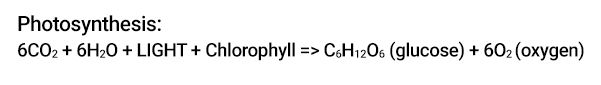 植物は二酸化炭素を栄養として消費していることに注目しましょう。水と日光と結合して、植物の糖分(代謝エネルギー)を生成し、私たちが呼吸する酸素を放出するのです。