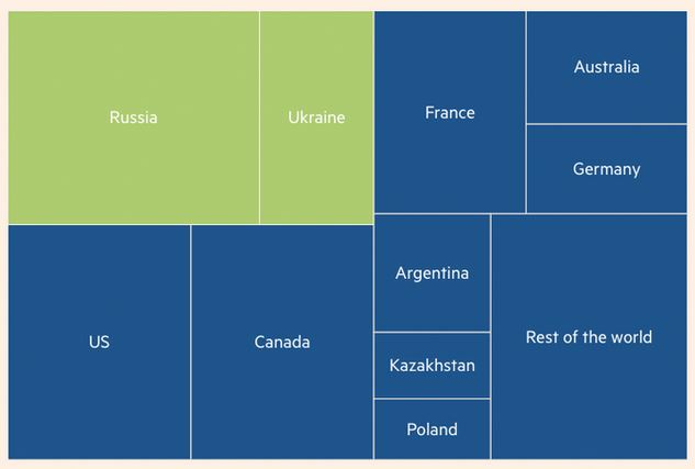 ロシアとウクライナは世界有数の窒素肥料と穀物の生産国である