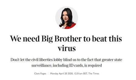 Covid-19は、権威主義的統制の触媒として使用された。この小冊子のシナリオは、パンデミック中に、一部の政府は厳格な規制とロックダウンを課すことができ、市民が疑いなく従うことを要求する可能性があると述べた。この集中管理は、パンデミックを封じ込めることに成功するだろう。時間が経つにつれて、これらの制御措置は恒久的になり、パンデミックが終わった後でも、政府の監視、生体認証、自由の制限の増加につながるだろう。また、このシナリオは、公衆の健康と安全を保護するために必要であると見なされている与えられたすべての命令に従って、一般の人々がこれらの制限を大規模に遵守するだろうことを強調した。