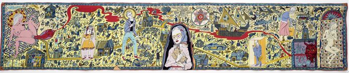 あのタペストリーには狂気が渦巻いているが、要約すると、女性が赤ん坊を出産し、その血の軌跡がそのまま・・・悪魔の口へと続いている様子を描いている。