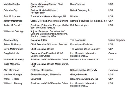 2022年ダボス会議の出席者名簿の34ページ(58ページ中)。大物、大企業、大きな影響力