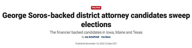 ソロスが支援する検察官が選挙に勝つことについての2022年の見出し。