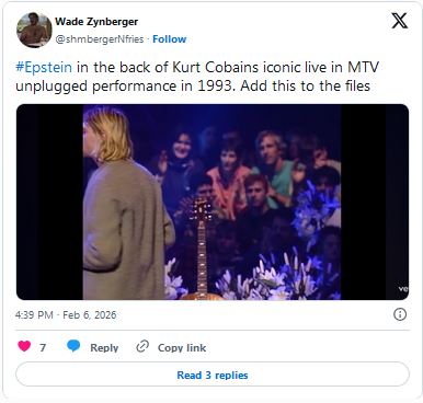 1993 年のカート・コバーンの象徴的なライブ、MTV アンプラグド パフォーマンスの後ろに#Epstein。これをファイルに追加しますpic.twitter.com/dhn3isSbvl