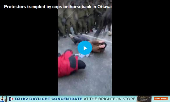 そして、週末に起きた警察の馬による踏みつけ事件も忘れてはなりません。RCMP警察のチンピラが無防備な人々の群れに意図的に馬を走らせ、最終的に高齢の女性を踏みつけて重傷を負わせたのです: