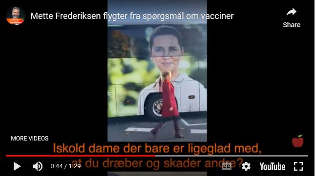 フレデリクセンは、オランダでのイベントで、デンマークの政党Frihedslisten(フリーダムリスト)のケント・ニールセン[Kent Nielsen]から罵声を浴びせかけられました。ニールセンは首相の背後から近づき、自己紹介をした後、デンマークの指導者に「彼女の本国ではCOVID-19ワクチンで83,000人が亡くなっている」と言い放ったのです。さらに、15万人以上のデンマーク人がワクチンによる傷害を負ったといいます。