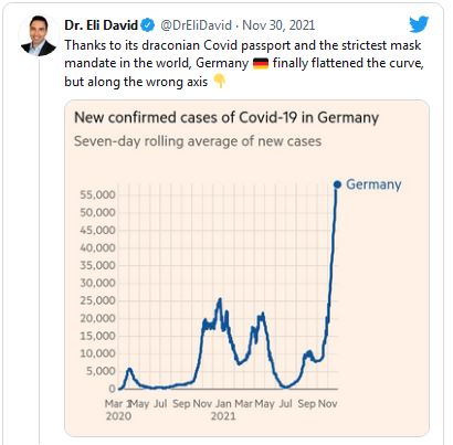 「厳格なCovidパスポートと世界で最も厳しいマスク着用義務のおかげで、ドイツはついに曲線を平らにしましたが、その軸は間違っていました」とデイビッドは冗談を言います。