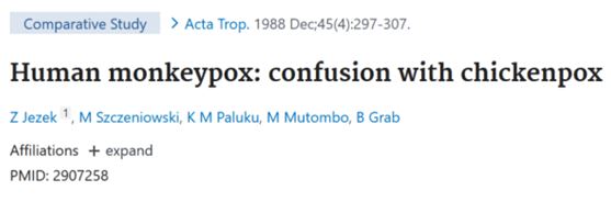 1988年に発表された科学的研究によると、サル痘と水痘(鶏痘)を区別することは事実上不可能である。水疱瘡は水痘・帯状疱疹ウイルスによって引き起こされ、その近縁種である単純ヘルペスウイルスと同様に、生涯にわたって体内に留まることになるのだ。