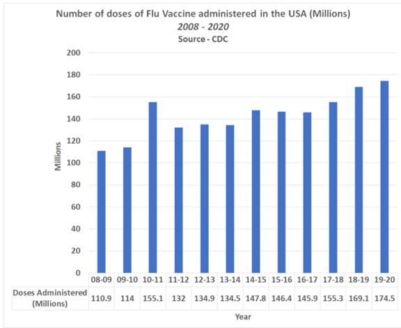 CDCによると、2008年から2020年の間に17億本のインフルエンザ用注射が投与された。