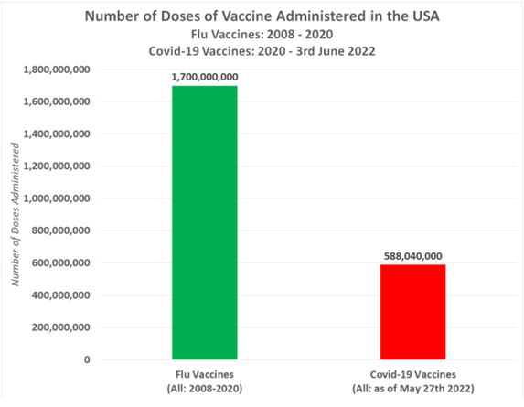 多くの人は、この増加は単に多くのCovid-19注射が投与されたからだと主張しようとするだろう。しかし、CDCの公式データによると、2022年6月3日現在、2008年から2020年の間に投与されたインフルエンザ用注射は、Covid-19注射の約3倍であるため、これを主張する人は完全に間違っていることになる。