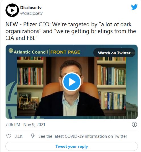 Pfizer CEO: People who spread ‘misinformation’ should be jailed – CIA & FBI are helping us Thursday, November 11, 2021 by: News Editors