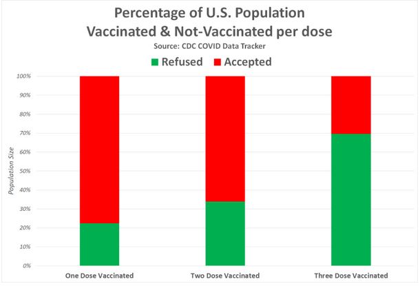 CDCのデータによれば、アメリカ国民はCovid-19注射の有効性に関するバイデン大統領のプロパガンダと嘘を見抜いた。なぜならアメリカの全人口の70%がCovid-19ワクチンの1回目、2回目、あるいは3回目の接種を受けていないためである。