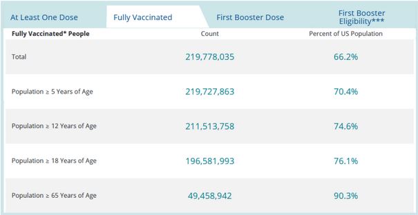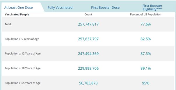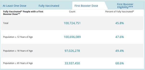 CDCによると、上記からわかるように、2022年5月2日現在、2億5700万人が1回目の接種を受け、2億1970万人が2回目の接種を受け、1億7000万人が3回目の接種を受けていることになる。