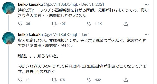 時給2万円 ワクチン高額報酬に群がる医師。忽那が打ちまくってる。寝たきり老人にも・・悪魔にしか見えない。