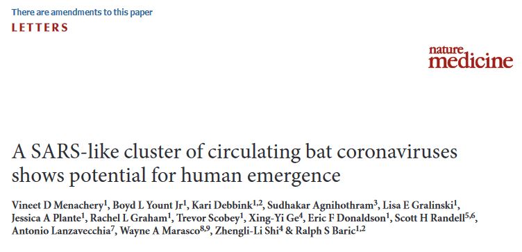 WIVの石正麗博士、通称「バットウーマン」は、EHAのダスザックとコウモリ関連の研究をしていたこともあります。2005年の時点で、ダスザックと正麗はコウモリのSARS様コロナウイルスに関する研究を行っていました。SARS様コロナウイルスと豚インフルエンザに関するPREDICTの資金提供研究のいくつかは、正麗とダスザックの両名が貢献しています。おそらくこれらの中で最も注目すべきは、彼女が共著した2015年のPREDICTとNIHの資金提供による『A SARS-like cluster of circulating bat coronaviruses shows potential for human emergence(コウモリのコロナウイルスからなるSARS様クラスターは、ヒトに出現する可能性を示している)』と題された研究です。