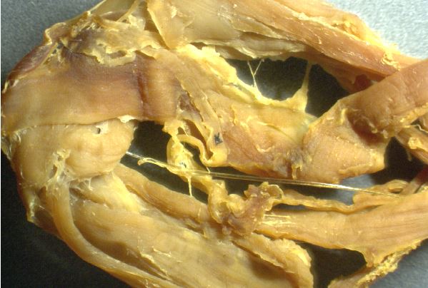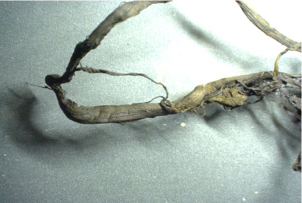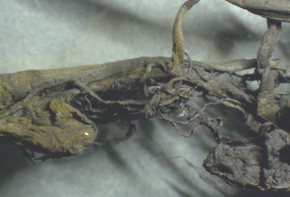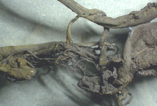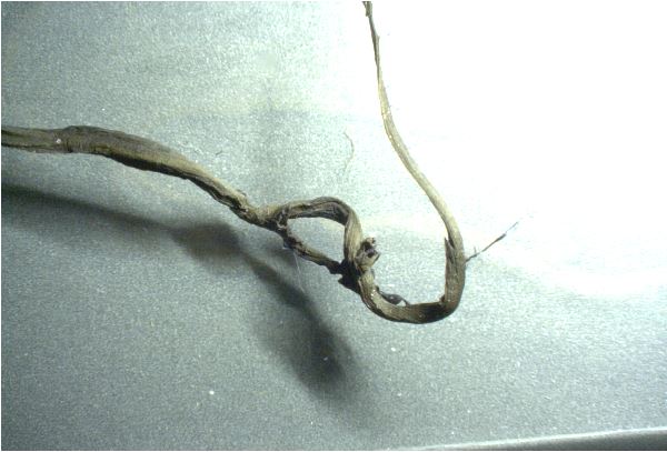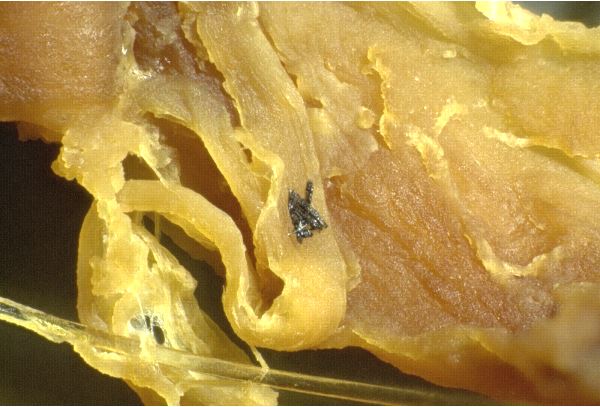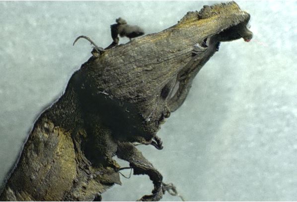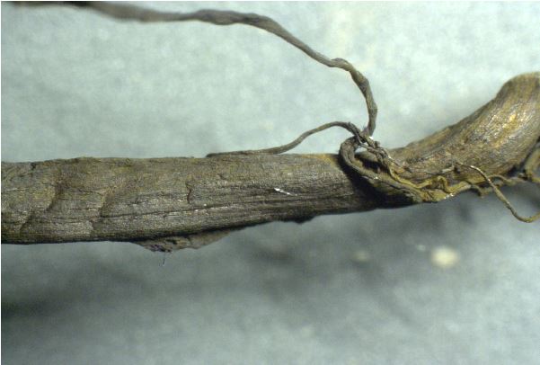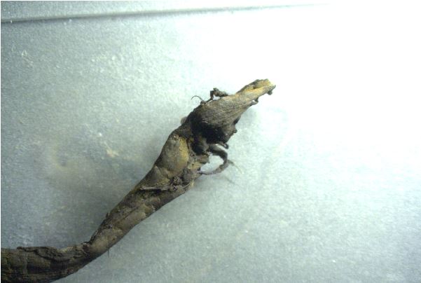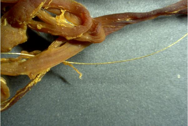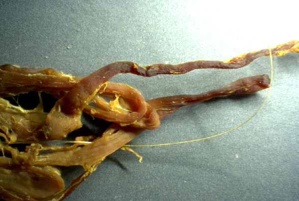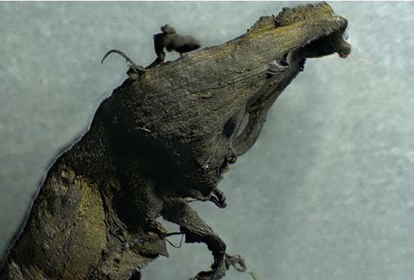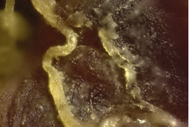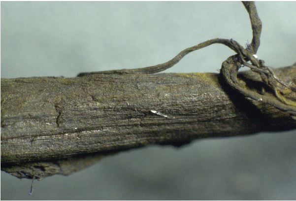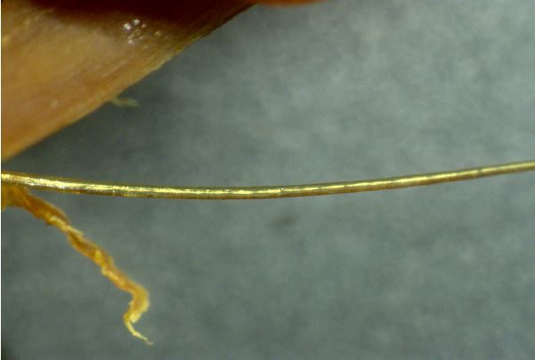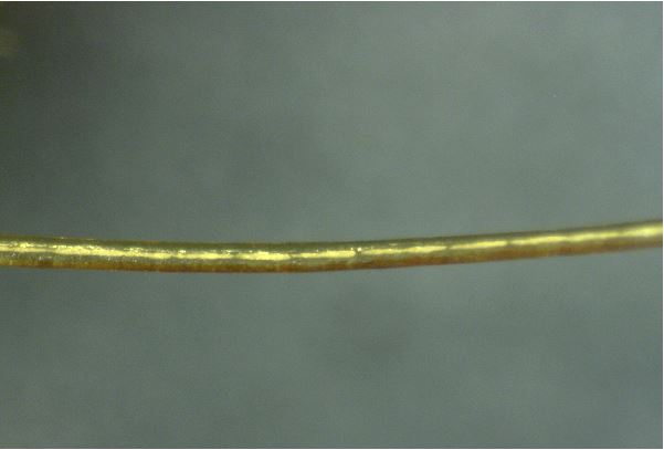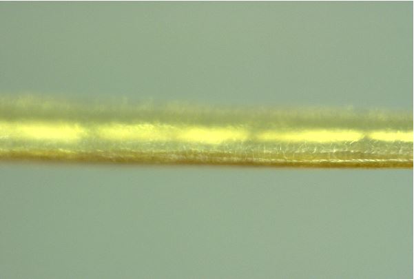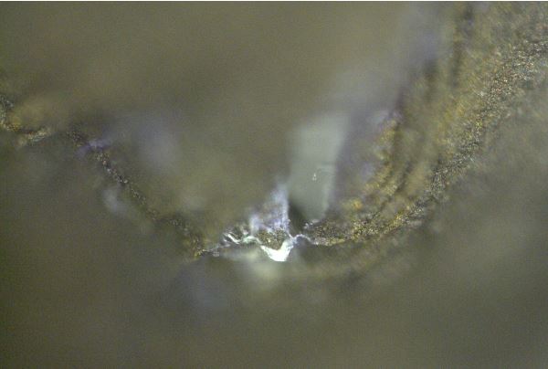 3. 硝酸分解後の血餅の顕微鏡写真。ICP-MS分析のために血餅を硝酸で処理した際に生じた黒くなった(酸化した)筋模様が見られる。