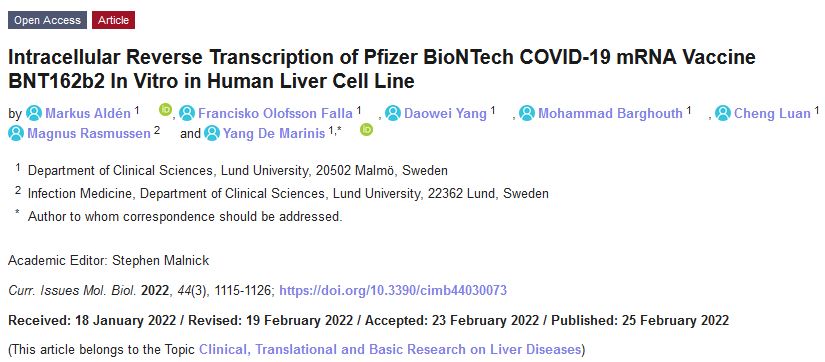 ところで、研究者たちがヒトの肝細胞にmRNA注射が如何にしてDNAに変換されるかを試験管内またはシャーレで示したのはこれが初めてです。ここでも再び、「専門家」や「ファクト・チェッカー」は、これは不可能であると虚偽の主張を続けています。