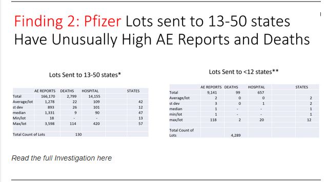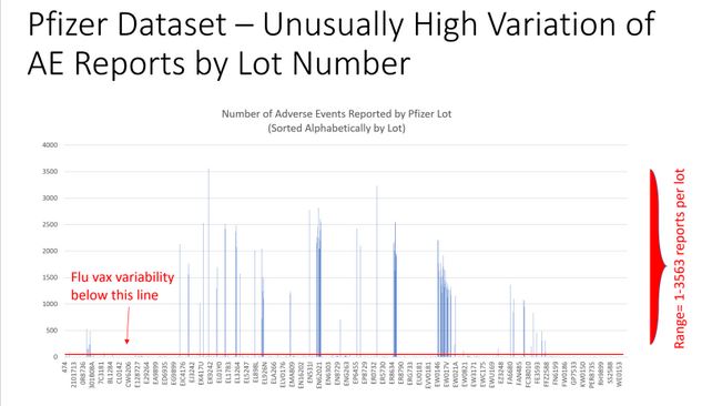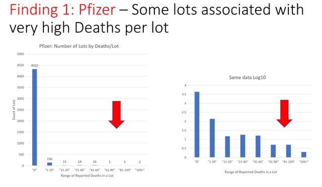 しかし、どちらの場合も、少数のワクチンロットで、死亡を含む信じられないほど高い確率で有害事象が発生しています。