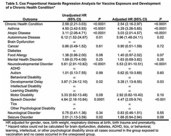 ワクチン接種を受けた子供と受けなかった子供を比較すると、慢性疾患はワクチン接種を受けた子供に比べて3~7倍発生します。このため、この種の研究の実施は長年禁止されているのです(それが、ワクチンと傷害の間に「証拠は存在しない」という現状が放置されるのを許しています)。