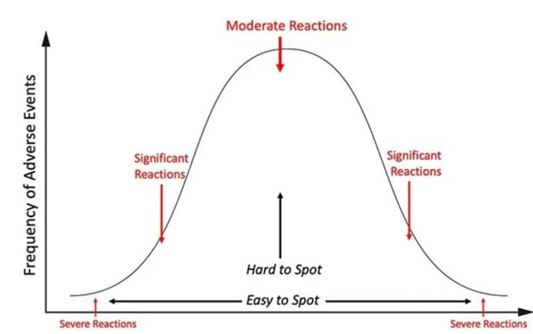 何かが人間に危害を加えるときは常に(致死性が高い場合を除き)、重傷よりも軽度の反応の方がはるかに一般的です(たとえば、COVID-19ワクチンによって死亡した人よりも障害者がはるかに多かった)。