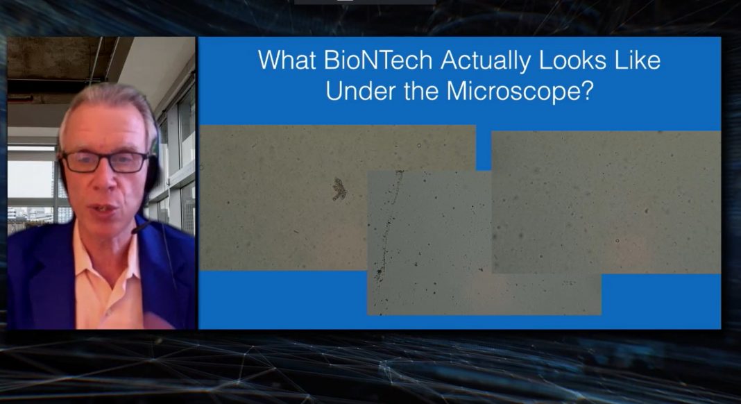 「私たちは、ワクチンそのものを見ました。通常の生理食塩水は、そうあるべきもののように見えます。清潔で、さわやかで、良い製品です。しかし、ファイザーのワクチンを見てみると、そこには結晶、髪の毛、繊維、ゴミがありました。品質管理を通過できないようなゴミが入っているのです。」