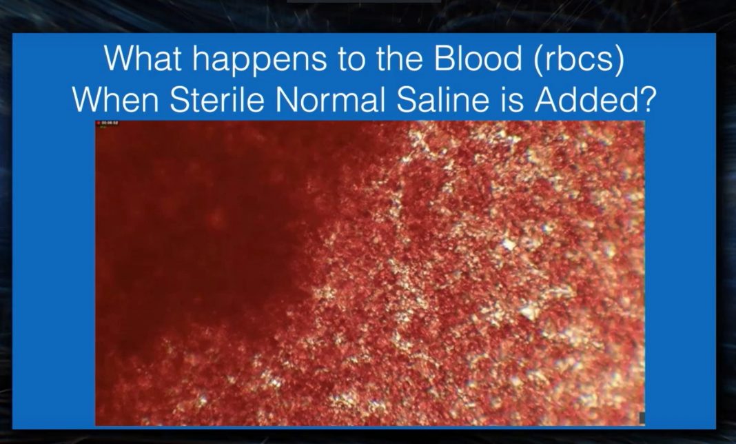 この科学者は、ファイザーのワクチンが赤血球にどのような影響を与えるかについても説明しています。彼とマッケインは、ある人の血液を採取し、あるサンプルには通常の生理食塩水を、別のサンプルにはファイザーのワクチン溶液を加えました。そして、顕微鏡で両者を観察しました。