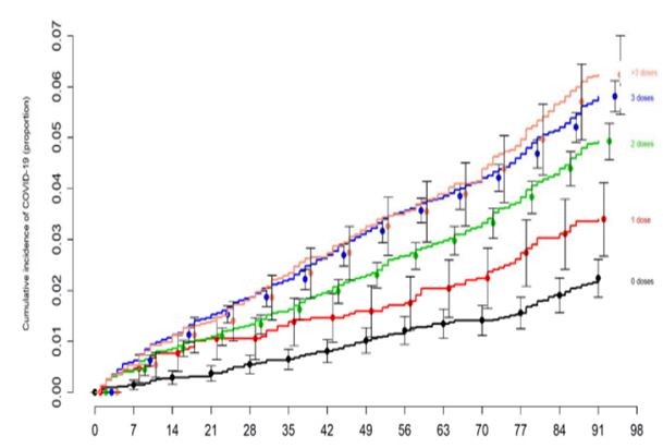 上にグラフで示した彼らの研究結果は、オリジナル・ワクチンの接種回数が多ければ多いほど、Covidに感染する可能性が高くなることを示している。言い換えれば、オリジナルのCovidワクチンは単にオミクロンに効果がないだけではない。実際には抗効果的なのである。