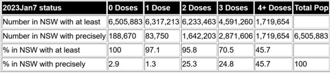 ニュー・サウス・ウェールズ州のワクチン接種状況 2023年1月7日