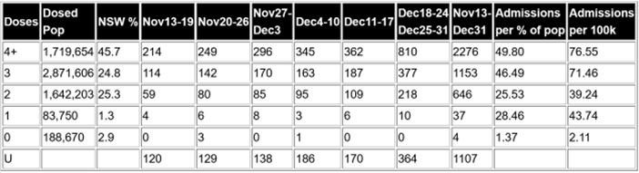 ニューサウスウェールズ州、2022年最後の6週間の入院とICU入室のデータ、用量依存的な免疫系破壊を示す